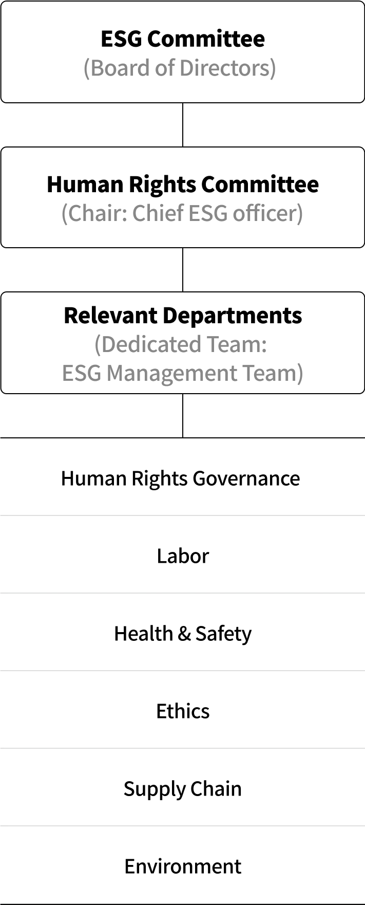 We support human rights protection and labor standards of international organizations such as the 10 principles of the UN Global Compact (UNGC), the UN Convention on the Rights of the Child, and the International Labor Organization (ILO). In order to comply with the international human rights and labor standards and guidelines, we establish this policy and faithfully implement it.